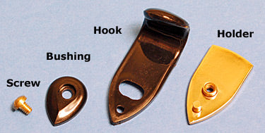 Includes holder, hook, bushing, and screw. Holder solders onto saxophone main body tube.